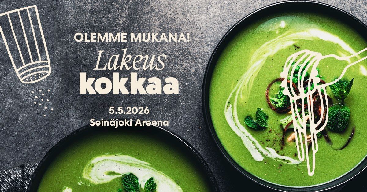 Lakeus kokkaa -tapahtuma järjestetään tiistaina 5.5.2026 klo. 12.30-17.00 Seinäjoki Areenalla, ja se kokoaa yhteen HoReCa-alan ammattilaiset ja asiantuntijat. Tapahtumassa esitellään kauden mielenkiintoisimmat uutuudet, inspiroidutaan tämän hetken trendeistä ja tutustutaan ajankohtaisiin puheenaiheisiin. Tapahtuma on kävijöille maksuton.